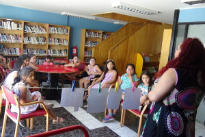 Claudia castora Cuenta cuentos, es la encargada de realizar este taller de fomento lector. Donde los niños aprenden a contar y elaborar cuentos.