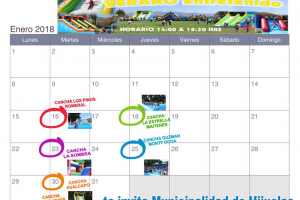 El día martes 16 de enero, comienza el VERANO ENTRETENIDO en la comuna de Hijuelas, con juegos inflables, piscinas, palomitas de maíz y show artístico bailable.En la fotografía adjunta se indica la calendarización del mes de enero para los distintos sectores.Invita: Municipalidad de HijuelasGratis...
