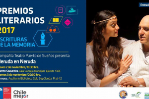 El Ministro de Cultura Ernesto Ottone Ramírez y el Director Regional del Consejo de la Cultura y las Artes de La Araucanía Pedro Mariman Quemenado, tienen el agrado de invitar a usted a presenciar la obra de Teatro "Neruda en Neruda" de la Compañía Teatro Puerto de Sueños, que se realizará el...