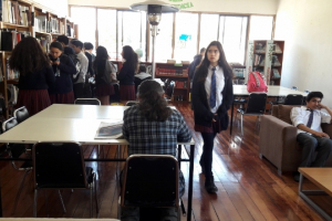 Alrededor de 20 alumnos del 8º Básico “A”. Del Villa María College de Machali, nos visitaron el día Jueves de esta semana, vinieron a realizar un trabajo de investigación y los libros de Historia que se encuentran en nuestra Biblioteca cumplieron con el objetivo.