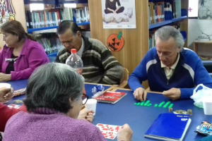 Se reunieron este lunes a contar sus vivencias y a la vez jugaron lota, lo pasaron genial. Biblioteca La Granja