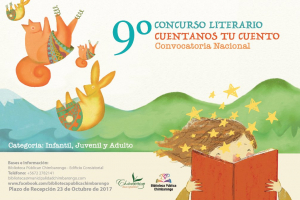 La I. Municipalidad de Chimbarongo a través de la Biblioteca Pública convoca a nivel nacional a escritores en el género narrativo a participar en el 9° Concurso Literario "Cuéntanos tu Cuento" 2017 en las categorías infantil, juvenil y adulto.¡Te invitamos a crear.... tu propio cuento...!!!Bases...