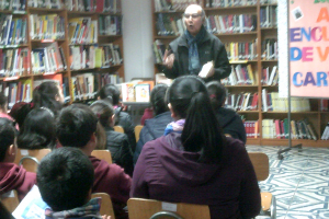 Hoy jueves 31 de la Biblioteca Pública N° 11 Jaime Quilan . Contó con la Visita de nuestro amigo y destacado escritor chileno Víctor Carvajal. Al encuentro de escritores asistieron los alumnos del colegio Graham Bell pertenecientes a la comuna de Pudahuel.