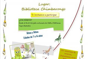 Invitamos a niños y niñas de la comuna a participar en el Taller de Manualidades Infantil, el cual se realizará en vacaciones de invierno del 10 a 14 de julio en jornada de la tarde de 15:00 a 17:00 hrs. en la Biblioteca.