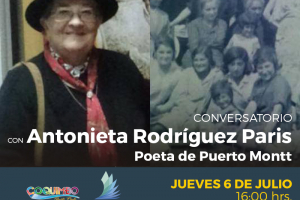 El día 06 de Julio, en las dependencias de nuestra biblioteca, a las 16:00 hrs., se realizará un conversatorio con una destacada escritora Chilena, Antonieta Rodríguez Paris quien nació en Puerto Montt. Es una profesora y escritora chilena adscrita a la literatura infantil y...