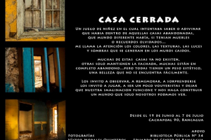 En nuestra Biblioteca se encuentra la Exposición de Fotografías ; llamada “Casa Cerrada”. Del Fotografo Victor Morales Quinteros. Desde el 19 de Junio al 07 de Julio. Ven a conocer y reconocer casas que ya no existen, o solo queda la fachada.
