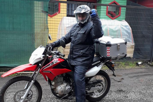 El encargado de la Biblioteca municipal de Romeral Paolo Cornejo en su primer viaje hacia los colegios en la nueva bibliomoto. Este proyecto fue adjudicado mediante la postulacion al fondo del libro y la lectura para hacercar a los colegios y la comunidad en general al mundo de la lectura, las...
