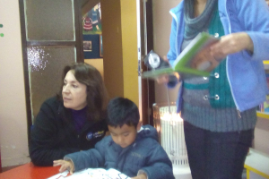 Una pequeña y tierna visita recibimos hoy por la mañana de los niños del Jardín Infantil (nivel Heterogéneo) "Caritas de Ángel", Miguel Huerta, quienes acompañados de la Tía Educadora Arlette Rickemberg y la Tía Jocelyne Torres, llegaron para conocer la Biblioteca y deleitarse con el Rincón...