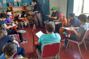Taller juvenil de Guitarra. esta actividad gratuita, se realiza cada miércoles de 16:30 a 17:30 horas.Destinado a personas sin conocimiento alguno del instrumento, la finalidad del taller consiste en brindar los conocimientos necesarios para la interpretación de la guitarra, abarcando...
