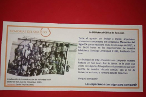 El equipo de la biblioteca invita a toda la comunidad al encuentro de comunitario del Programa Memorias del Siglo XX hoy a las 16:30 horas. Los estaremos esperando con unas ricas onces donde compartiremos hermosos recuerdos del poblamiento del sector San juan.