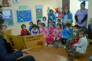 Y los cuentos siguen viajando, llegaron hasta la Escuela de Lenguaje “Andorra”, los niños y niñas del Nivel Transición 1 y Nivel Medio Mayor, disfrutaron de los cuentos “Corre corre, calabaza” texto Eva Mejuto y “La selva” adaptado por Paula Vera, los niños y niñas disfrutaron de las narraciones a...