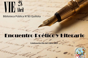 Están todos invitados a compartir Poesía y Literatura este viernes 28 de abril conmemorando el mes del libro.La actividad partirá con un homenaje a la poeta Dina Ampuero, para luego dar paso a la tertulia donde cada escritor irá exponiendo su trabajo y su vínculo vital con la literatura.Quedan...
