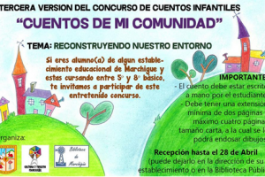 Biblioteca Pública N° 406 y la oficina de la Cultura de la Ilustre Municipalidad de Marchigüe. Organizan y convocan al tercer concurso de cuentos infantiles con el objetivo de concientizar a la comunidad escolar, como podemos cuidar nuestro entorno (El Medio Ambiente), fomentar la creación e...