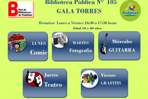 Cada taller esta destinado para jóvenes entre 10 y 20 años. El objetivo principal de estas actividades, es atraer jóvenes a la bibliotecas. utlizando estrategias artísticas, lectoras para ese fin.Convocando a Escuelas, liceos y Jovenes de la comunidad a particiapar de los talleres ...