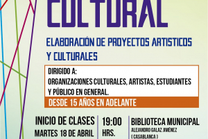 A partir del martes 18 de Abril al 25 de Julio en la Biblioteca Municipal Alejandro Galaz, se realizará en Casablanca el “Taller de Elaboración de Proyectos Artísticos y Culturales”, con el objetivo de introducir, desde la práctica y el contexto local, las competencias y las herramientas...