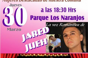 El dia jueves 30 de marzo 2017, a las 18:30 horas, en el Parque Los Naranjos, se realizará un homenaje a Mujeres destacadas de la comuna de Hijuelas.Con la voz romántica de Jared Jueh y la música de Los Vikings 5 en vivo.No te lo pierdas!!!Organiza : Municipalidad de HijuelasEntrada Gratuita ...