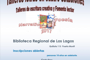 Invitamos a quienes deseen participar de talleres de poesía y narrativa (mayores de 18 años), a realizarse en la Biblioteca Regional de Los Lagos los días martes (narrativa) y miércoles(poesía), fecha de inicio martes 28 de marzo para ambos géneros a las 18.00 hrs.Inscripciones abiertas. Puedes...