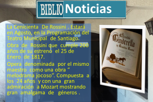 La Cenicienta De Rossini . Estará en Agosto, en la Programación del Teatro Municipal de Santiago. Obra de Rossini que cumple 200 años de su estreno el 25 de Enero de 1817. Opera denominada por el mismo maestro como...
