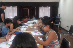 Como todos los Jueves y Viernes, se realiza el "Taller de Artes Visuales Entretenida". Donde participan alrededor de 50 niñas y niños, de 5 a 13 años de edad. Desde las 10 de la mañana en adelante, separados según las edades. Esta semana realizaron la técnica de Estampado Artesanal en Género.