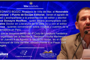 En la ciudad de viña del se ofrecera el 4º Ciclo de Literatura Fantástica Chilena que tendrá lugar este jueves 4 de agosto a las 19:00 horas en el Foyer del Teatro Municipal de Viña del Mar.