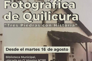 “MUESTRA “MEMORIAFOTOGRAFICA DE QUILICURA, TRES PIEDRAS CON HISTORIA”, La memoria gráfica que estas fotografías nos entregan dan testimonio de una parte de los121 años que el pasado 10 de agosto cumplió nuestra Comuna, de allí el aporte cultural,patrimonial e histórico del que podemos ser...