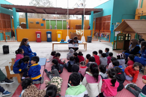 La Biblioteca Alfredo Wormald Crzu en terreno . a través de su Área Infantil, acercando a los nuños y niñas del jardin infantil Tevito, llevando novedosos cuentos , fichas didácticas manualidades todo en un contexto del medio ambiente , humedal , santuario picaflor.