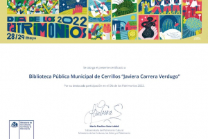 Diploma otorgado por el Ministerio de las Culturas, las Artes y el Patrimonio por nuestra participación en el Día de los Patrimonios 2022