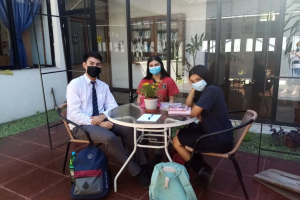 Los alumnos de Cuarto Medio, Maite, Ingrid y Nicolás, del Liceo Comercial Diego Portales, Colegio Hispano Chileno El Pilar y el Liceo Ernesto Pinto Lagarrigue. vinieron a la Biblioteca a estudiar y disfrutaron la "Terraza del Lector". VEN A LA BIBLIOTECA!!!!