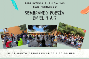 El día 21 de marzo se conmemora el "Día internacional de la poesía" por eso la biblioteca realizará una actividad en donde 7 poetas y artistas locales harán declamaciones en el patio de la Biblioteca.Serán participes de esta actividad los poetas y artistas:Daniel Osorio Lizana, Angelica Candia...