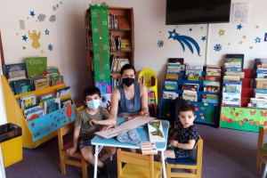 La Familia Cruz Garay junto a sus hijos Nahuel y Mateo, se hicieron socios de nuestra Biblioteca y disfrutaron el rincón infantil.