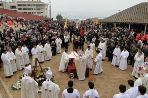 En la explanada de la parroquia se celebró la Misa...