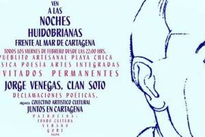 Todos los viernes de este mes desde las 22:00 hrs., se llevaran a efecto las Noches Huidobrianas frente al mar de Cartagena, habrá poesía, música y artes integradas. Patrocinado por el Fondo de Cultura Verano Gore de Valparaíso.