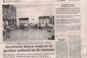 La Biblioteca Municipal de Curicó “Tomás Guevara Silva”, representada  a través de su Director el Periodista Rodolfo de los Reyes, participó en el “Primer Seminario de Gestión Cultural” organizado por la Universidad de Talca y el Centro Cultural de Cooperación Ibérica de España, y realizado en...