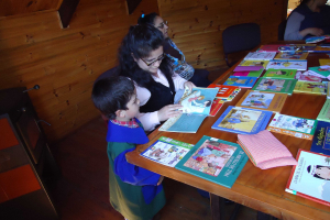 Por celebrar un año más de Fundación Integra nos visitan los niños y niñas del jardín Infantil "Tía Laura" de Malalcahuello. Dándoles a conocer los libros infantiles con una pequeña muestra en el salón auditorium de la biblioteca