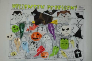 Se realizó el taller de origami, con su monitor el señor Sandino Muñoz y una gran asistencia de niños del sector La Faena, nos dejaron de regalo un hermoso cuadro titulado "HALLOWEEN DE ORIGAMI"