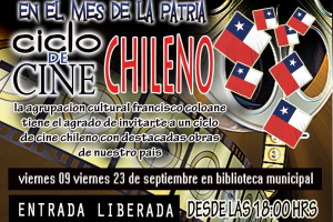 La Agrupación Cultural Francisco Coloane y la Biblioteca Pública N° 238 Mercedes Oporto Vera los invita a un ciclo con lo mejor del cine chileno, este viernes 09 de septiembre a contar desde las 18:00 hrs en nuestras dependencias, en Arturo Prat # 1960, sigamos apoyando las...