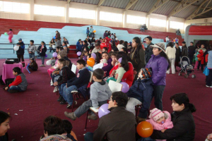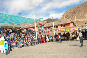 Al poniente de la plaza y a un costado de la Biblioteca de Putre fue la celebración en que se congregaron más de un centenar de niños y niñas del pueblo de Putre.