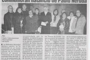 Alcaldesa , poetas locales e invitados de Ercilla, conmemoraron el natalicio de Pablo Neruda, el miércoles 28 de julio, a las 20:00 horas.
