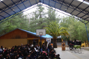 Se inaugura Cancha techada en la Escuela de Mira Río , con la participación de autoridades locales y representante del Instituto de Deporte Regional.