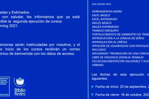 NUEVOS CURSOS E - LEARNING. Desde el 30 de agosto hasta el 13 de septiembre interesados o interesadas se deben matricular en el siguiente link:https://forms.gle/TkMSGmhpAmzECYRs6