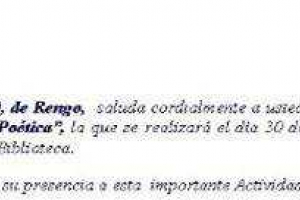 La Biblioteca N°70 de Rengo, saluda cordialmente a usted y le invita a participar de una interesante Tertulia Poética, la que se realizará el día 30 de Junio, a las 17:00 horas, en las dependencias de la Biblioteca.