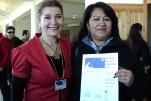 Fátima Hotus Hey, Jefa Biblioteca Pública N°5 y Encargada del Programa BiblioRedes en la Biblioteca de Isla de Pascua junto a Paola Gallegos Muñoz, Corrdinadora Naional del Programa Biblioredes.