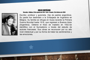 El 26 de agosto de 1914 nace Julio Florencio Cortázar, en Bruselas, Bélgica, escritor y traductor argentino; este último oficio lo desempeñó para la Unesco y varias editoriales. Falleció el 12 de febrero de 1984, París, Francia Cortázar se identifica con el movimiento surrealista a...