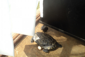 Nuestras mascotas, Rafaela y Donatello ( tortugas de orejas rojas), que habitan en la Biblioteca hace casi dos años, y que son las preferidas de nuestros usuarios infantiles, se encuentran en una dulce espera