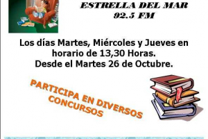 Te invitamos a escuchar los días Martes, Miércoles y Jueves por Radio Estrella del Mar nuestro programa "NUESTRO RINCON DE LECTURA EN EL AIRE", en horario de 13,30 Horas.