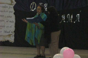 En este acto  de la celebración al "Dia de la madre" fueron invitadas a participar de este evento personas pertenecientes al  taller de poesía y Declamacion que se realiza en la Biblioteca Publica, dicha actividad se realizó en el Gimnasio Municipal.