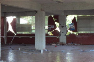 La imagen del interior de la biblioteca muestra los daños que hemos sufrido, damos gracias a Dios que no hay daños personales que lamentar....