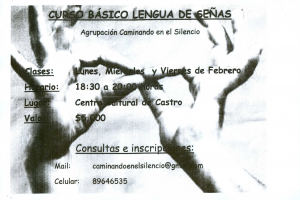 Clases: Lunes, Miercoles y Viernes de Febrero Horario: 18:30 a 20:00 horas. Lugar: Centro Cultural de Castro. Consultas e inscripciones: Mail: caminandoenelsilencio@gmail.com Celuar: 89646535 Castro- Chiloé.