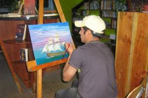 Taller de Pintura Organizado por La Biblioteca, se realiza los dias martes de cada semana desde las 17:30 horas a 18:30 en sala Biblioteca,monitor don Orlando Oyarzún, Presidente Agrupación Amigos de la Biblioteca