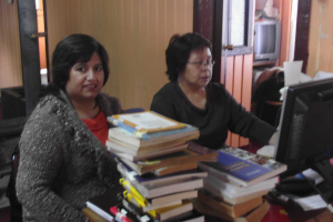 La Encargada Regional de Automatización Sra. Fresia Catrilaf Balboa, junto con la Encargada de la Biblioteca se encuentran trabajando en el proceso de automatización, para que la Biblioteca de Lonquimay tenga su colección circulando automatizadamente a la brevedad.